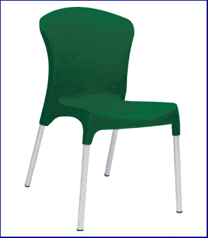 כיסא פלסטיק יצוק בעיצוב חדשני וחזק עם רגלי מתכת ניקל.